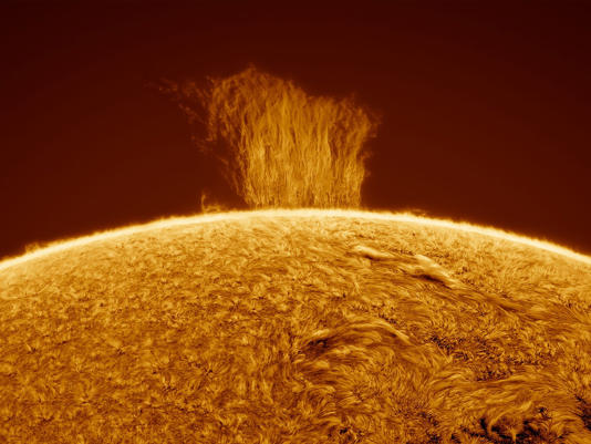 وعلت البلازما 100 ألف كيلومتر (60 ألف ميل) فوق سطح الشمس، أي أنها ارتفعت بما يكفي لابتلاع 8 كواكب، قبل أن يسحبها للأسفل الامتداد المغناطيسي للنجم.